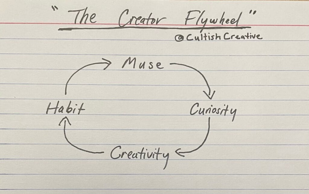 I know what you’re thinking. “Muse?!” Yes. That’s where it starts. Let me explain with an analogy from what I wanted to call this before I settled on The Creator Flywheel.